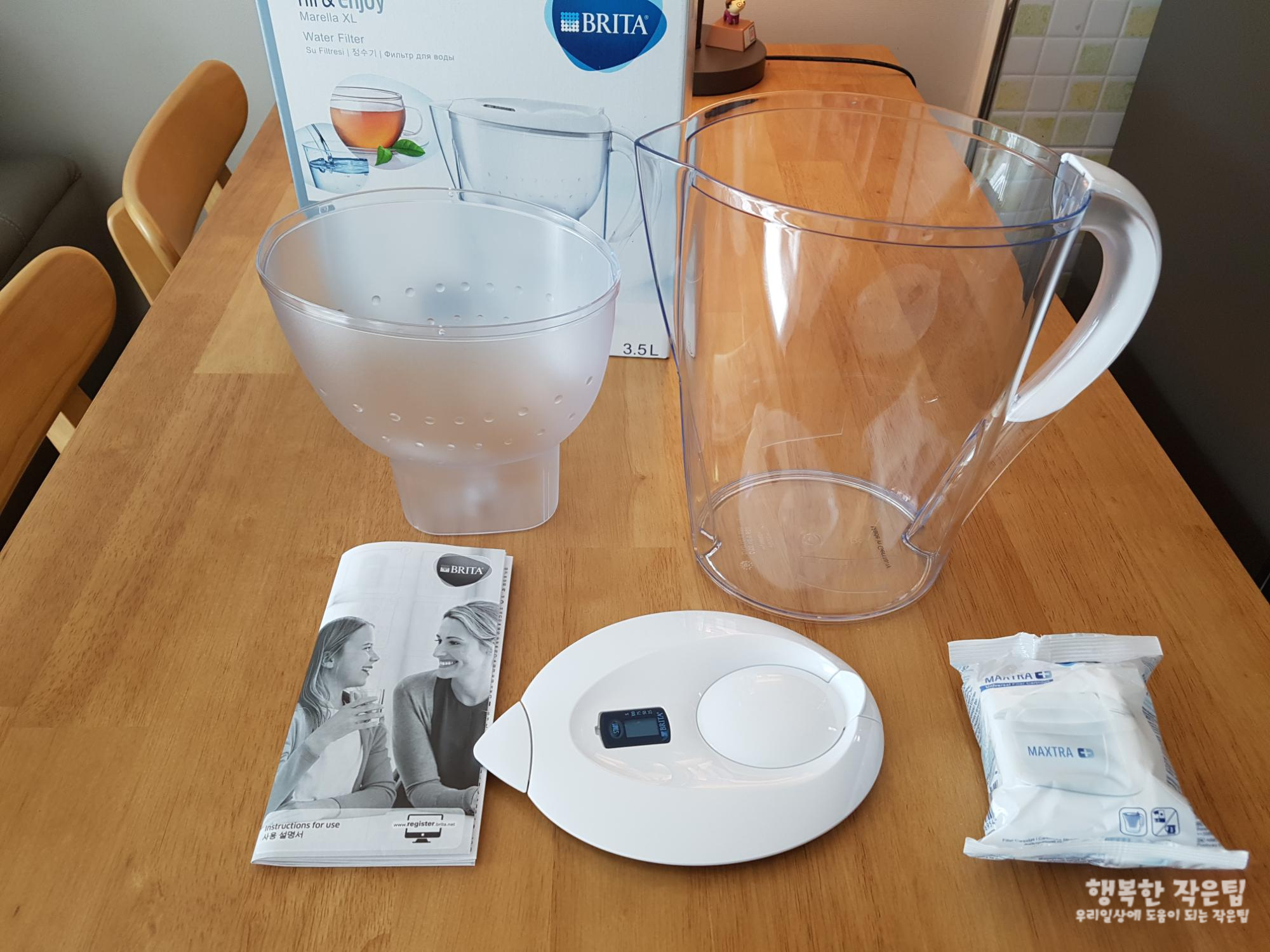 아래는 브리타정수기의 전체 구성품들입니다.
